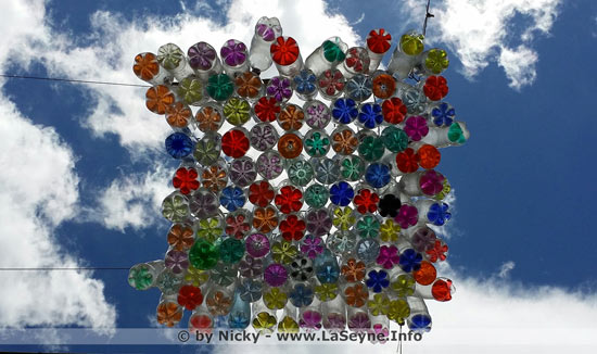 les rues Laganne, Franchipani, Taylor et République. Autre nouveauté, dans cette initiative mêlant les artiste du collectif Co-Op, les enfants de l’Amiq et les services techniques de la ville, l’installation, rue Carvin, d’un ciel de bouteilles de toutes les couleurs.