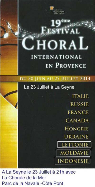 Dans le cadre du Festival Choral International en Provence, où se présentent de magnifiques choeurs venus de très loin, la Seyne/mer reçoit :