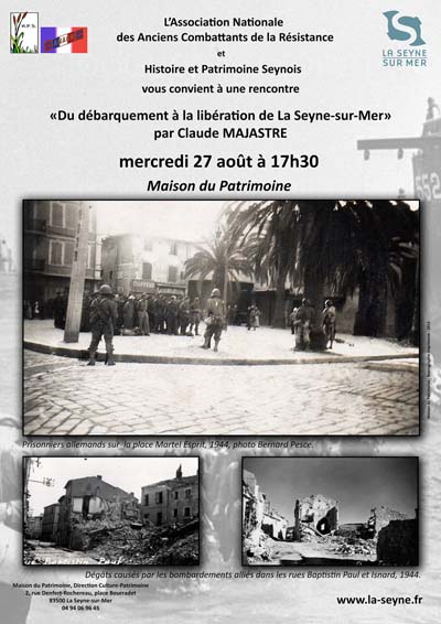70ème anniversaire : "Du débarquement à la libération de La Seyne" par Claude Majastre. L'ANACR et HPS vous invitent à une Rencontre à la Maison du Patrimoine le Mercredi 27 août à 17H30
