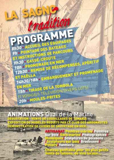 Soleil de plomb et mer d'huile : la Sagno tradition a débuté hier matin dans des conditions optimales. De quoi faire plaisir (et soulager) les deux « capitaines » de la manifestation, Bruno Léger et Gilbert Campodinico ... Dès 9 heures, au pied du Pont Levant, une quarantaine de bateaux de tradition se disputaient les faveurs des photographes amateurs.