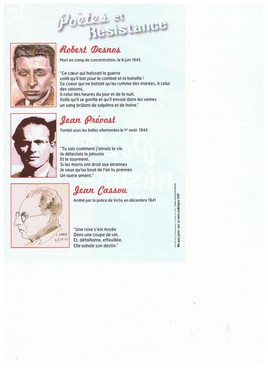 > Nous poursuivrons cependant l'évocation des poètes et de leur place dans la Résistance.