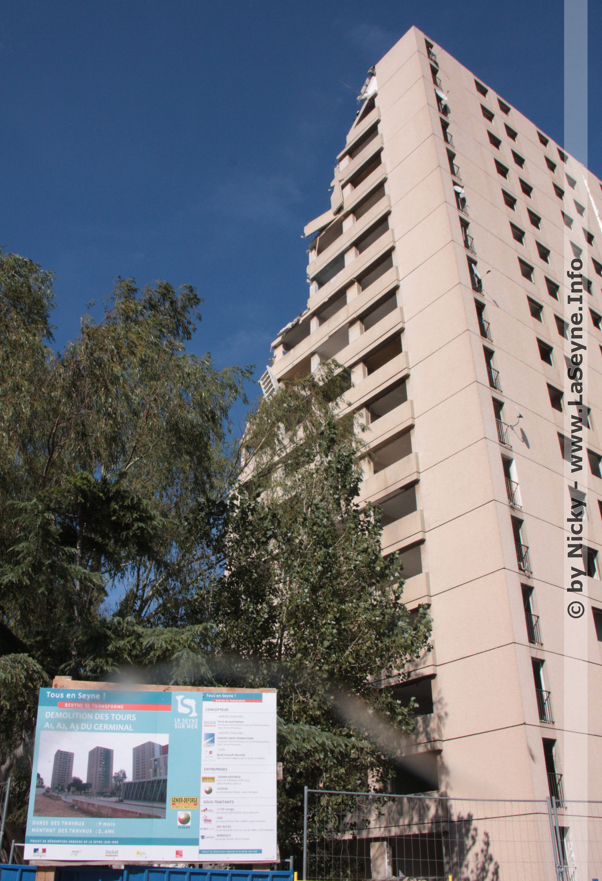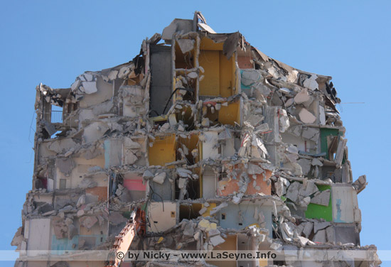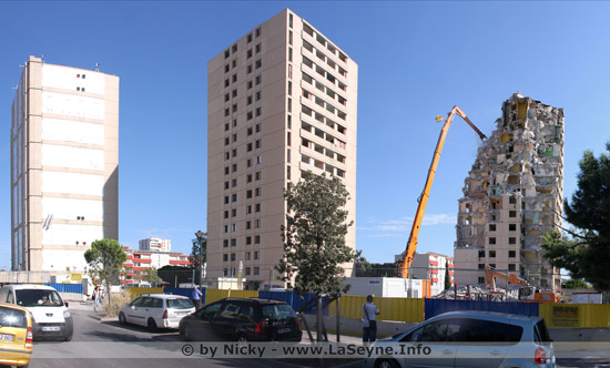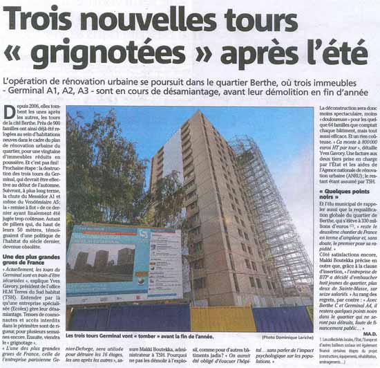 L'opération de rénovation urbaine se poursuit dans le quartier Berthe, où les 3 tours du Germinal A1 / A2 et A3 sont actuellement en cours de désamiantage avant leur démolition en fin d'année 2015. Ci-dessus un article paru ce jour dans Var Matin.