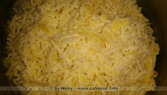 ... enfin une casserole ... avant de rajouter du lait, du beurre salé, de la noix de muscade fraichement râpée, du sel et du poivre du moulin