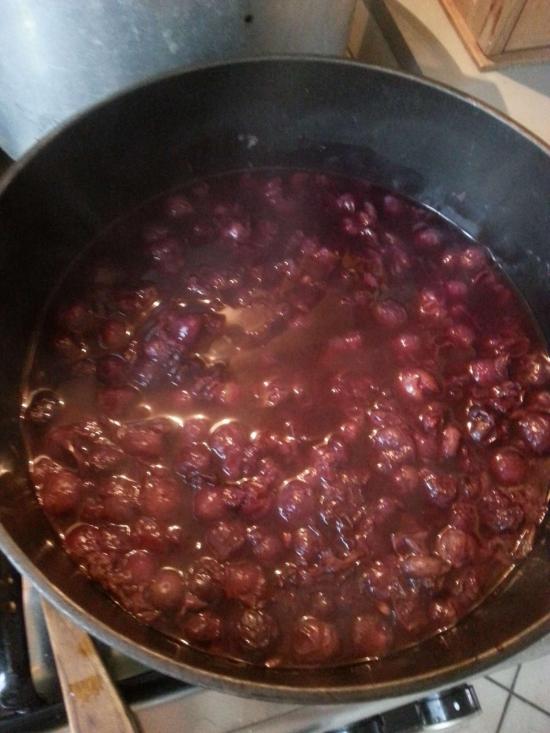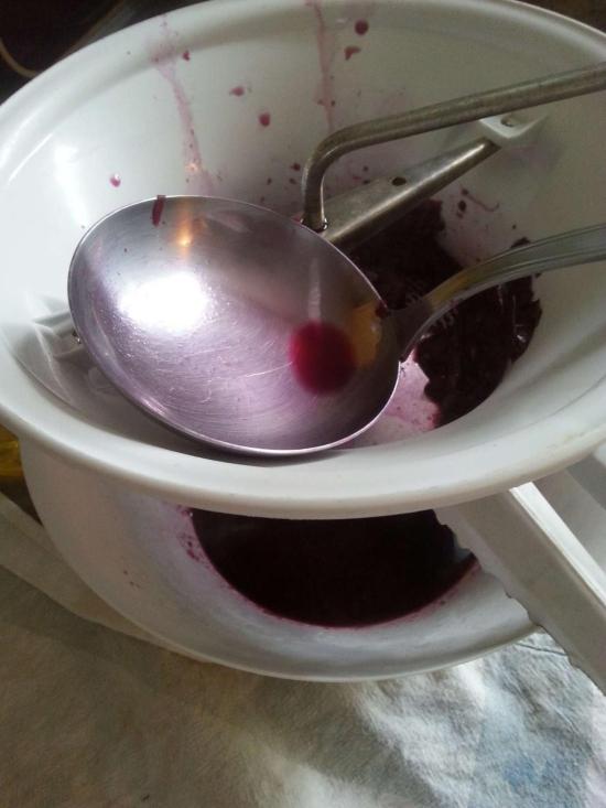 Faire cuire les raisins dans l'eau pendant environ 30 minutes. Laissez légèrement refroidir, puis passer au presse purée.