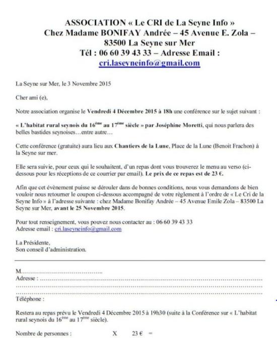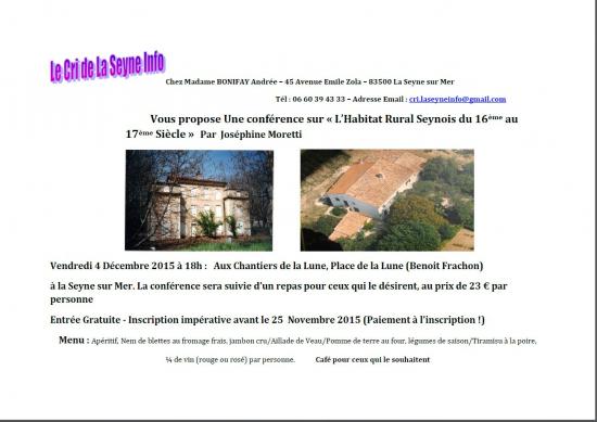notre association organise le 4 décembre 2015 à 18h aux Chantiers de la Lune une conférence sur les belles bastides seynoises...et autres...
