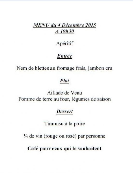 Et le menu proposé :