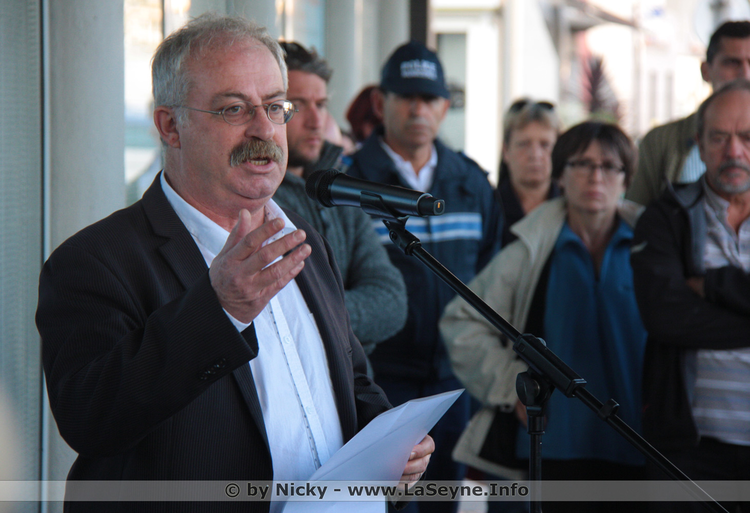Nous tous, citoyens, habitants de La Seyne et de tous les territoires de la République, avons le devoir commun de nous battre pour la paix. Nous tous, ici, sans discrimination aucune, entamons avec fermeté, dans l’unité absolue requise par la situation, dans l’état d’urgence décrété par le Président de la République, un travail patient et incessant de vigilance et de sécurisation renforcée de notre vie quotidienne.