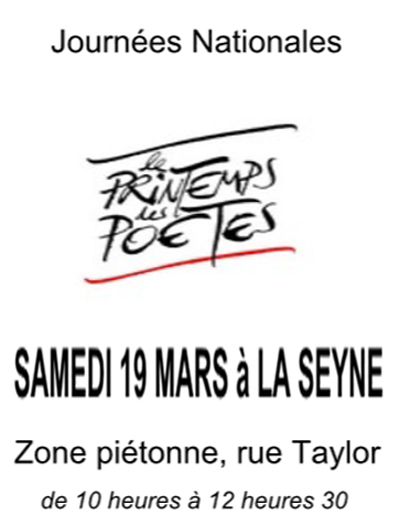 Journées Nationales "Le Printemps des Poètes" samedi 19 mars 2016