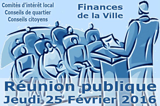 Réunion publique consacrée aux finances de la ville: Comités d'intérêt local - Conseils de quartier - Conseils citoyens - Jeudi 25 février 2016 à 17h30 - Salle du conseil municipal