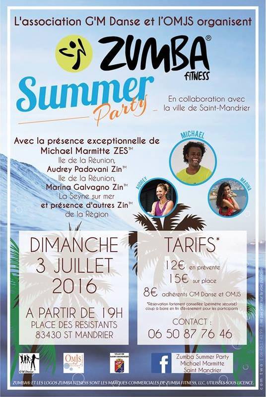RDV: Dimanche 3 Juillet 2016 à 19h - place des résistants 83430 Saint Mandrier- ( 18h45 Show Zumba® Kids élèves de l'association G'M Danse).