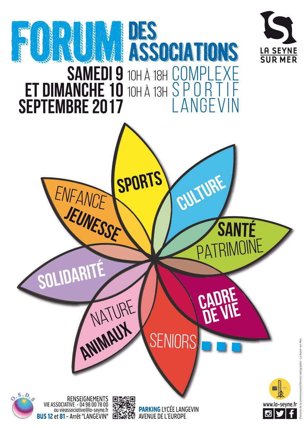 Forum des Associations - La Seyne sur Mer - 09 et 10/09/2017 - Le week-end du sport et de la vie associative : enfance, jeunesse, loisirs, solidarité, culture et sports ... Inauguration du Forum des associations Samedi 9 septembre 2017 à 11 heures au Complexe sportif Langevin et Stade Léry ...