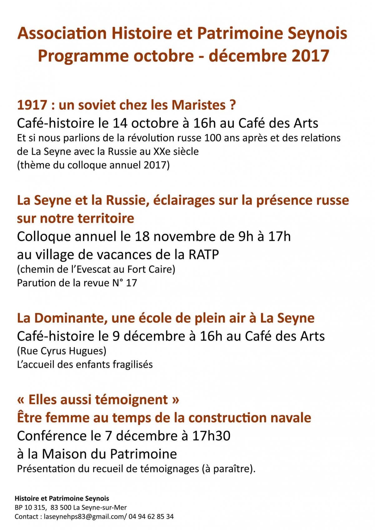 Veuillez trouver ci-dessous nos deux prochaines manifestations. 14 octobre : 1917, un soviet chez les Maristes 19 octobre : La relance des chantiers par les CNIM