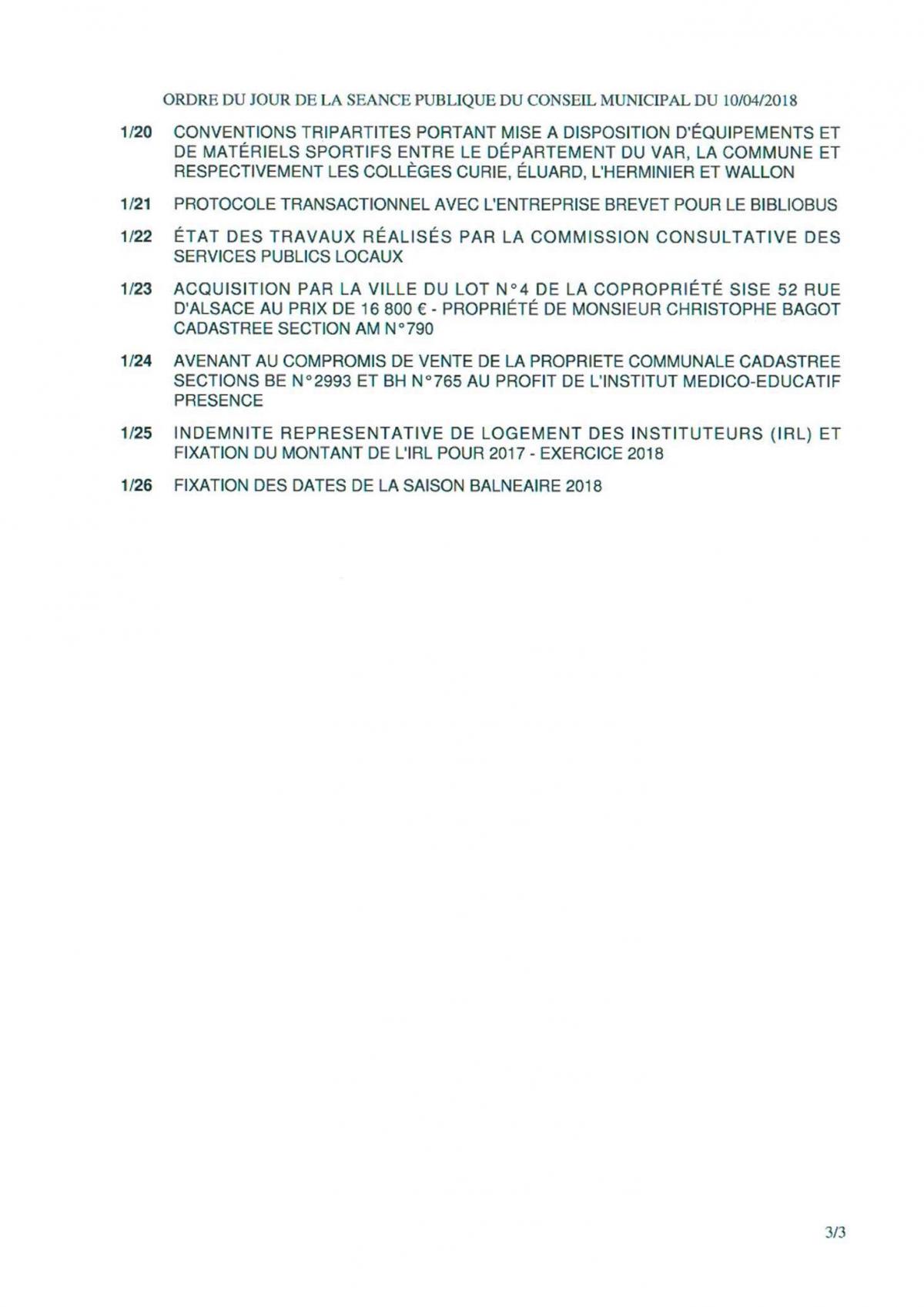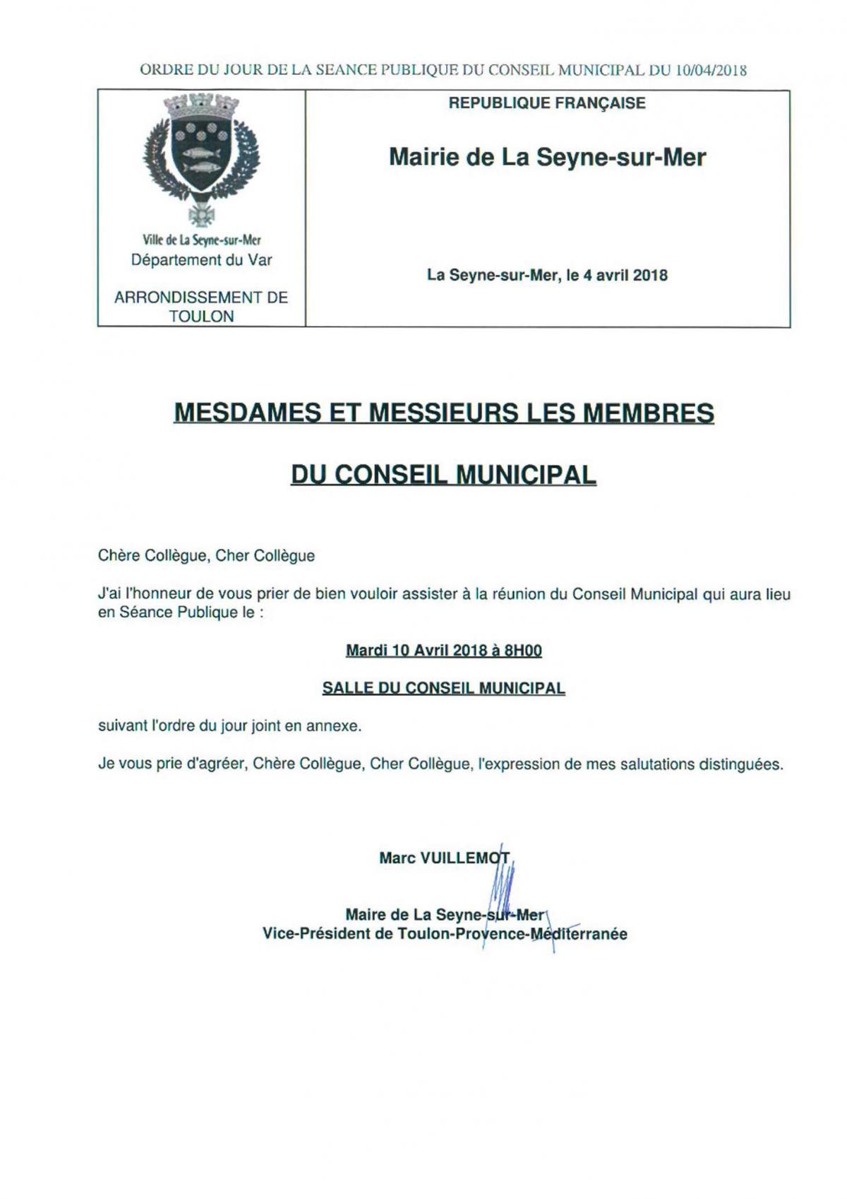 Conseil municipal Seynois - Mardi 10 Avril 2018