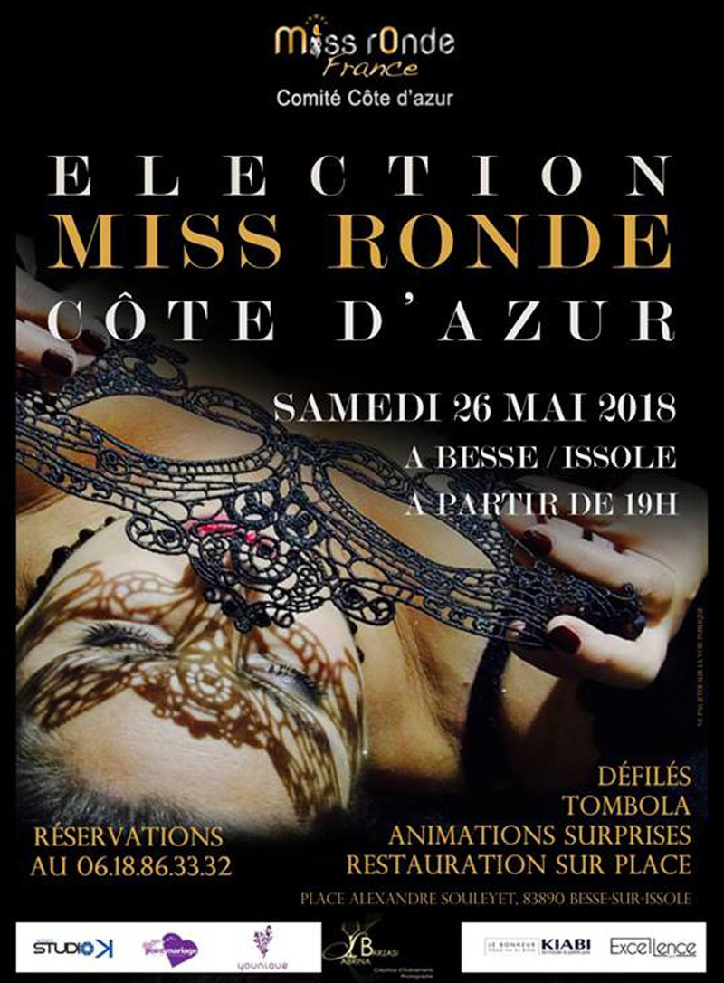Election Miss Ronde Cote d'Azur - 26/05/2018 à Besse sur Issole - Venez découvrir la nouvelle Miss ainsi que ses dauphines pour la saison 2018 ... "De nombreux exposant nous accompagnerons". Entrée - 10 euros par personne ... 5 euros pour les enfants de 3 a 12 ans - TOMBOLA - Restauration et boisson sur place ... en savoir plus sur www.facebook.com/missronde.cotedazur