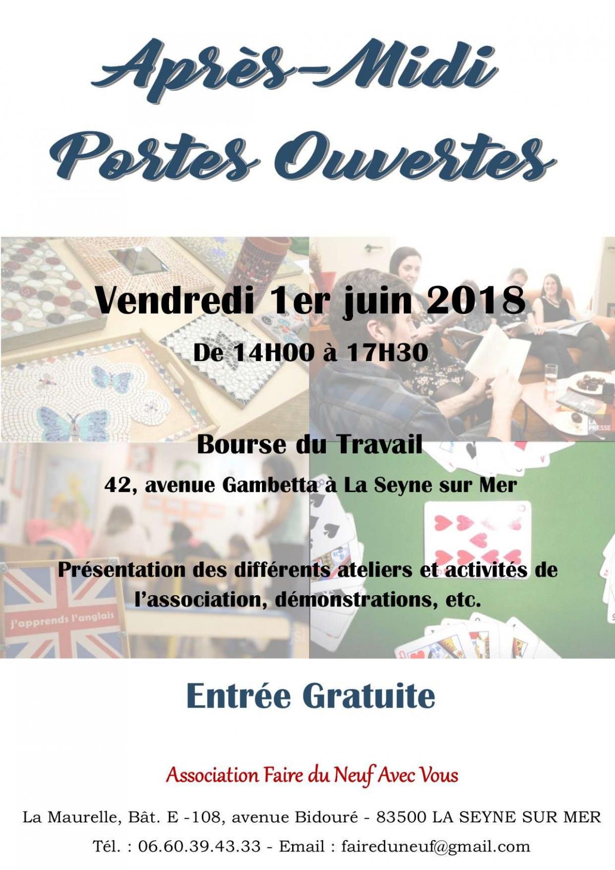 Notre association ouvrira ses portes sur l'ensemble de ses activités le vendredi 1er juin 2018 à 14h à la Bourse du Travail.