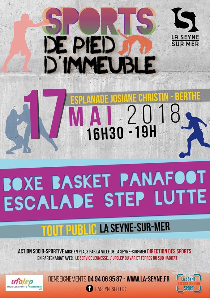 De la Boxe, Basket, Panafoot, Escalade, Step, Lutte ... Une action socio-sportive tout publique, mise en place par la ville de La Seyne-sur-Mer, direction des sports en partenariat avec le service jeunesse, l'ufolep du var et terres du sud habitat - renseignements au 04 94 06 95 87