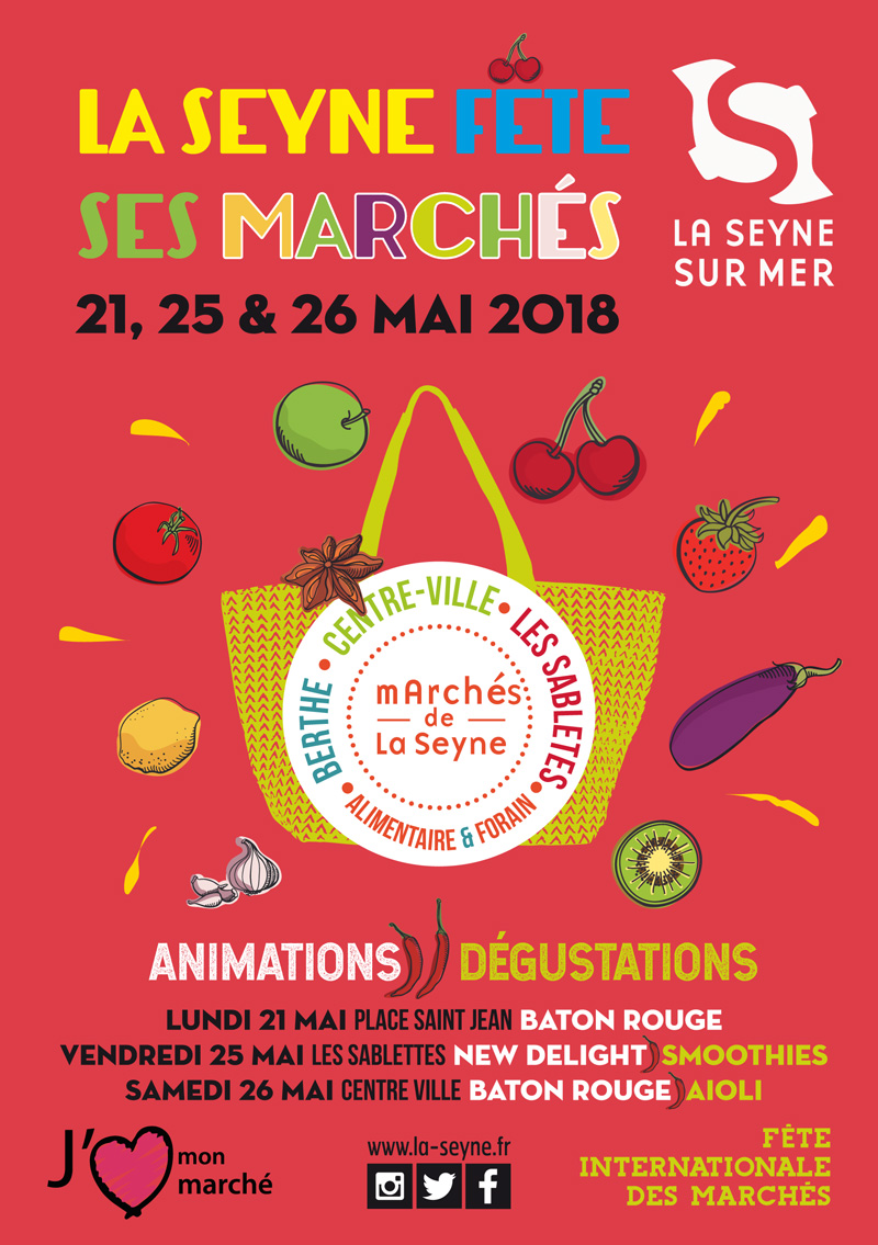 La Seyne fête ses Marchés les 21, 25 et 26 Mai 2018 - Pour la première fois, la ville de La Seyne a décidé de participer à la 4e édition de la fête internationale des marchés. Animations avec le groupe Baton Rouge et dégustations d'aïoli.