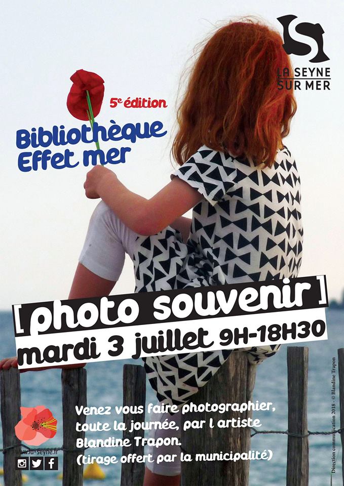 Un Studio Photo Souvenir à la Bibliothèque Effet Mer, le 03/07/2018 aux Sablettes - Préparez vos accessoires, gardez toutes vos étoiles dans les yeux et venez retrouver Blandine Trapon pour l'inauguration de la Bibliothèque Effet mer ce mardi 3 juillet 2018, sur plage des Sablettes ... Le studio de photos sera ouvert dès 09h00.