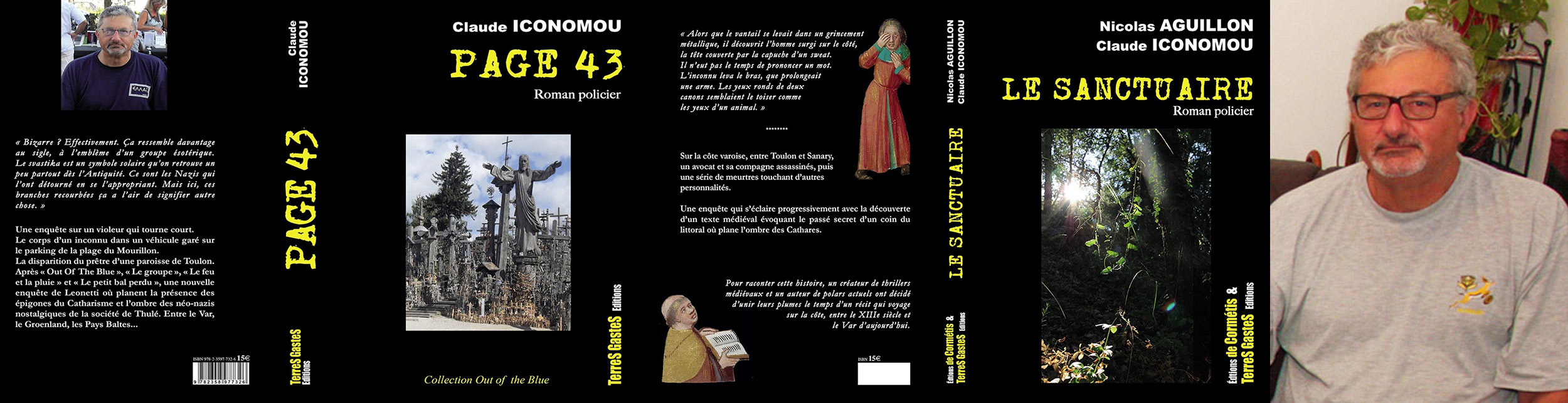 Dédicace: Claude ICONOMOU, le 27/10/2018 à Charlemagne La Seyne sur Mer - "Page 43" est un polar dans lequel on retrouve le commandant Leonetti. Il y est question des Cathares et des nazis du groupe de Thulé. Le récit se passe à Toulon, à La Seyne, et dans le Var, mais aussi dans le sud-ouest, au Groenland et dans les pays baltes. L'enquête démarre avec la découverte du corps d'un inconnu dans une voiture garée sur le parking de la plage du Mourillon ... "Le sanctuaire" est le fruit d'un travail à deux. Il est encore question de Leonetti, de Toulon et La Seyne, mais aussi du Moyen-Age, et d'un texte de cette époque, puisque Nicolas Aguillon est connu pour ses thrillers médiévaux dont l'intrigue tourne autour de la basilique de Saint-Maximin et d'autres lieux varois marqués par l'histoire religieuse.