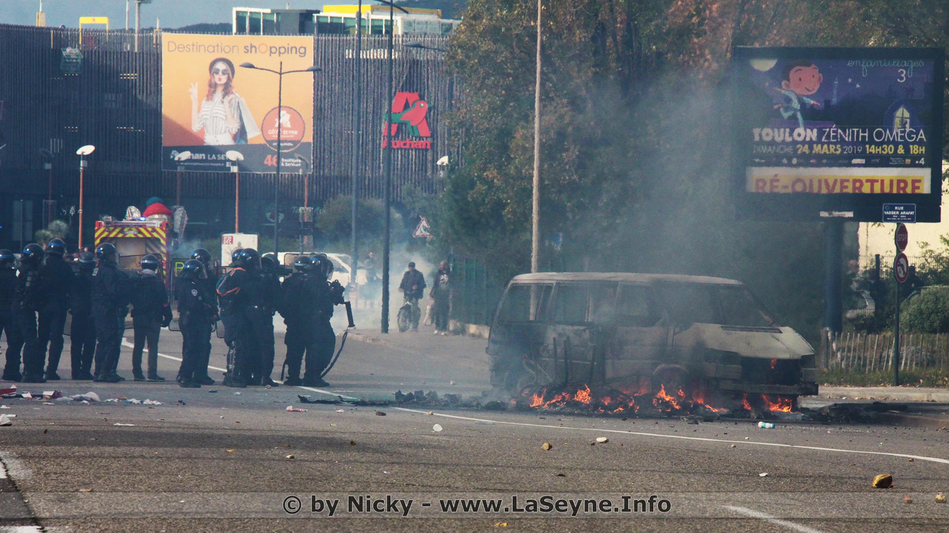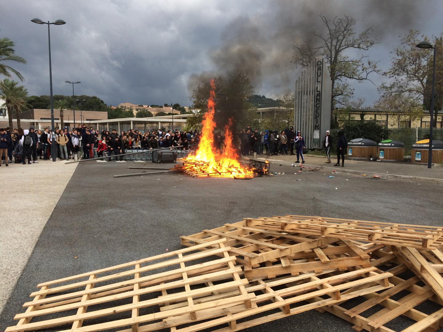 Gilets jaunes - 29/11/2018: Les entrées et sorties à l'échangeur de la Ciotat fermées - Plusieurs manifestations de gilets jaunes étaient en cours ce jeudi dans les Bouches-du-Rhône et le Var. A la Ciotat sur l'A50, les entrées et sorties sont interdites. Les forces de l'ordre ont délogé des manifestants sur le péage de la Barque sur l'A8.