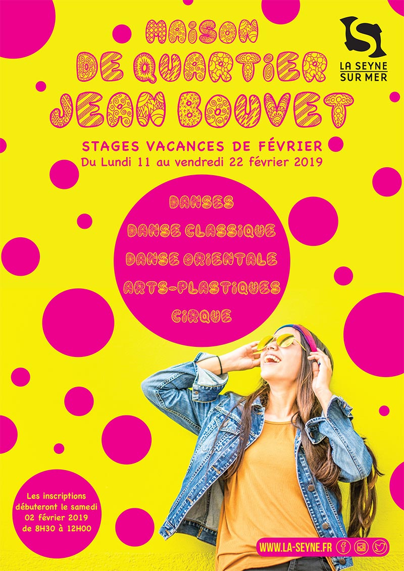 Stages d'Hiver 2019 à la Maison de Quartier Jean Bouvet, du 11 au 22 Février - A l'occasion des vacances d'hiver 2019, la Maison de quartier Jean Bouvet, chemin des Moulières, accueille des stages dont vous trouverez le détail ci-dessous. Renseignements et inscriptions à partir du samedi 02 février 2019 à 08h30 au 04 94 30 87 63.