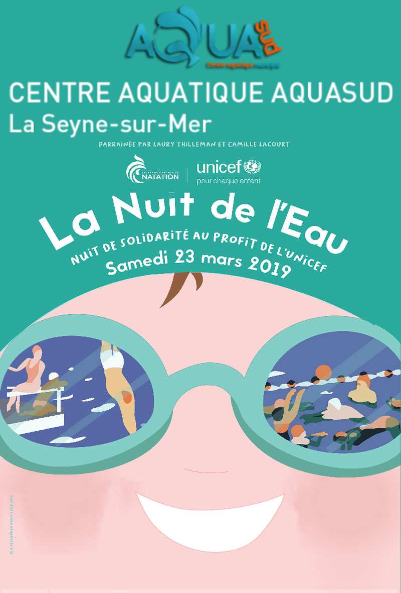 La Nuit de l'Eau 2019, c'est le Samedi 23 Mars à La Seyne - Vous êtes conviés à la 11ème édition de la Nuit de l'eau organisée par la Fédération Française de Natation et l'UNICEF France au Complexe aquatique municipal Aquasud, 432, avenue de Rome, samedi 23 mars 2019 de 18 heures à minuit.