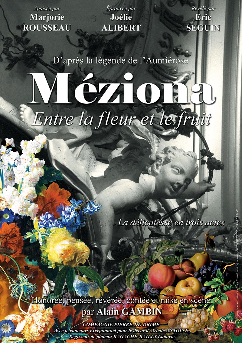 Création Théâtrale: "MÉZIONA", d'Alain Gambin, les v19, s20 et d21 Avril 2019 au Café-Théâtre 7ème Vague - "MÉZIONA", Entre la fleur et le fruit La délicatesse en trois actes d'après et inspirée de la légende de I'Aumiérose selon laquelle, toute connaissance et intelligence, devient de la sensation et de ses sortilèges. L'histoire bouleversante d'une orpheline de la Première Guerre Mondiale, inspirée des échanges épistoliers des soldats dans les tranchés pendant la guerre.