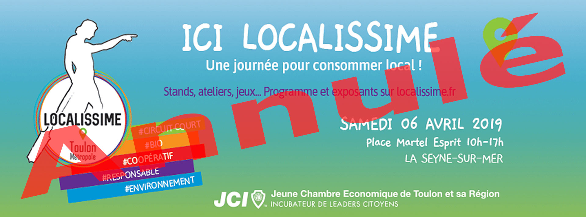 IcI Localissime: Une Journée pour consommer local, le 06 Avril 2019 - La Jeune Chambre Économique de Toulon et sa région organise la journée ICI Localissime, journée de la consommation locale et engagée, le samedi 06 avril 2019, de 10h00 à 17h00 à la Seyne-sur-Mer sur place Martel Esprit et la place Bourradet.