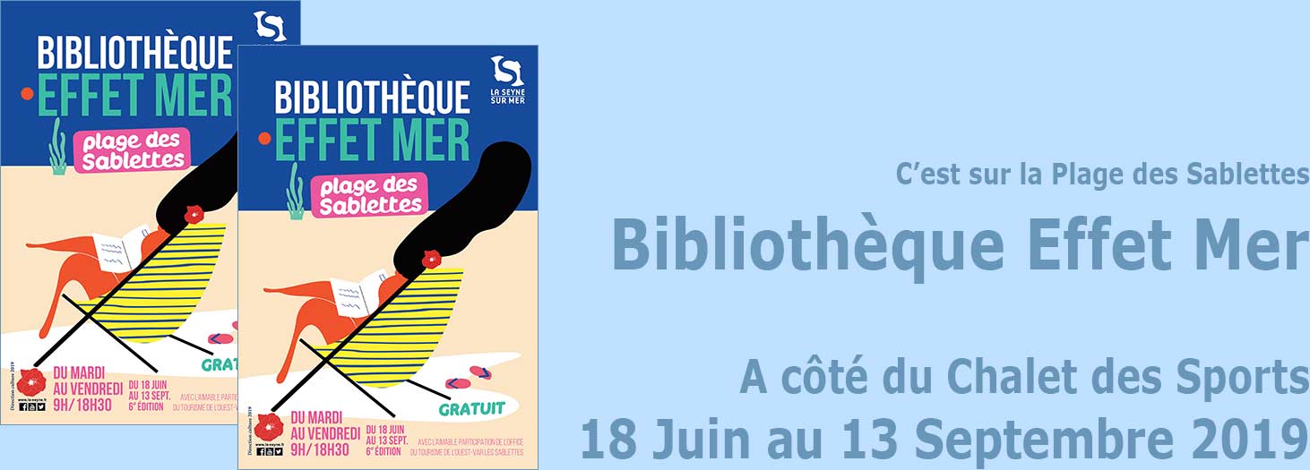 La Bibliothèque « Effet Mer 2019 », du 18 Juin au 13 Septembre - Sous les pavés de la plage ! C'est le grand retour de votre bibliothèque de plage, seynois ou estivants pourront ainsi feuilleter sur place ou emprunter plus de 500 lectures mis à leur disposition ... Vous êtes conviés à l'inauguration de la bibliothèque « Effet mer », entre plage des Sablettes et parc Braudel, à côté du Chalet des sports, mardi 18 juin 2019 à 18 heures. A cette occasion, un concert arabo-andalou sera donné par le Conservatoire régional de TPM ...