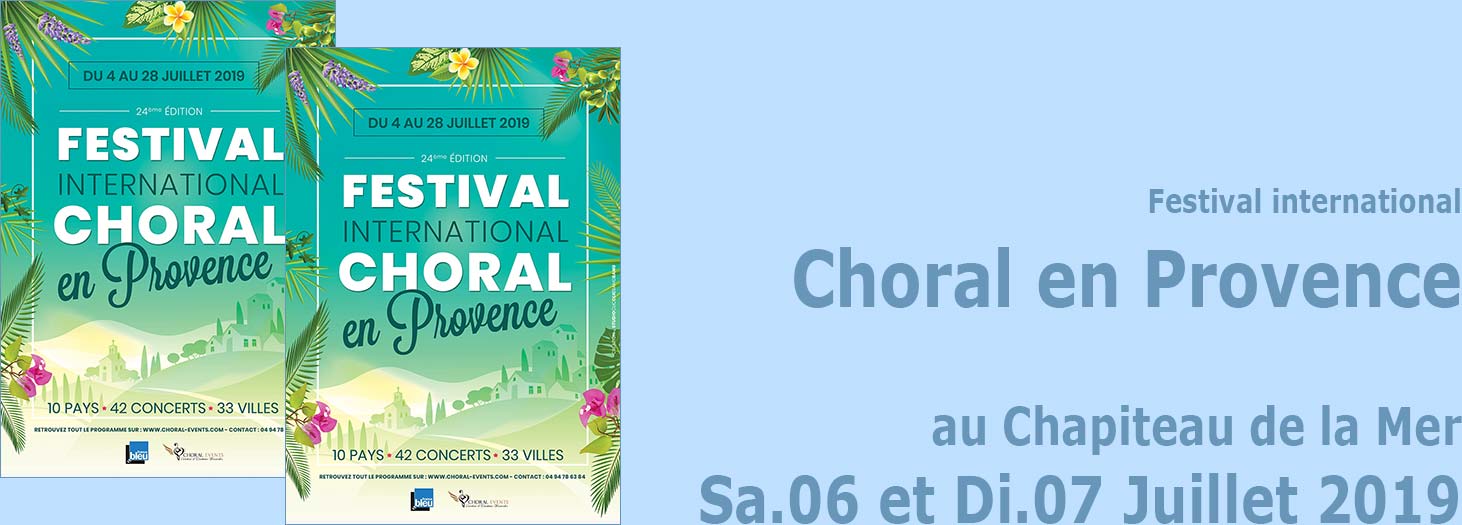 Le Festival Choral International en Provence, les 06 et 07 Juillet 2019 aux Sablettes - Créé en 1995, le Festival Choral International en Provence vous propose sa 24ème édition en juillet 2019. Unique en son genre, ce festival itinérant et de proximité, accueille des chœurs français et étrangers de grande qualité, pour une tournée de concerts dans toute la Provence. Avec l’objectif de transmettre leur passion du chant choral, dans une communion de cultures et de talents, les chœurs vont à la rencontre des publics avec des styles musicaux très divers.