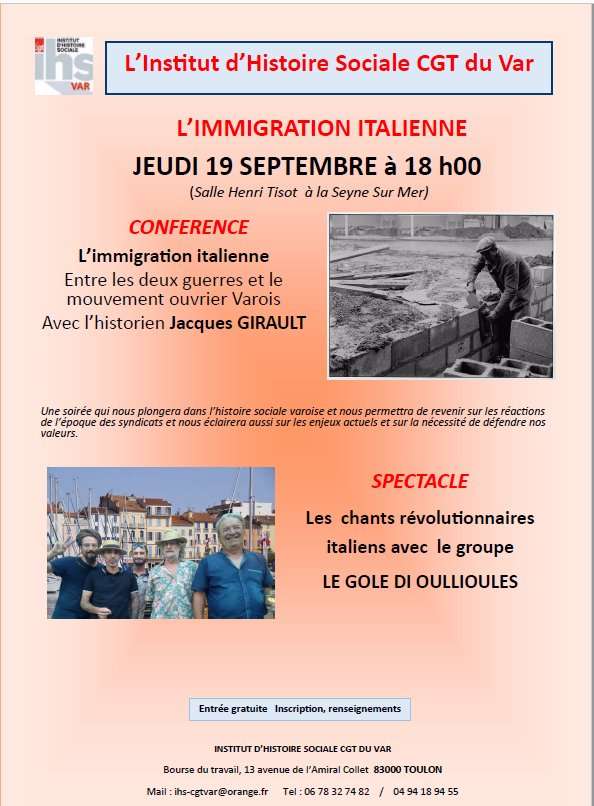 Nous avions fait une très belle exposition et conférence sur l'immigration italienne il y a environ 20 ans. A l'époque c'était Monsieur René Nicolas qui nous avait fait la conférence.