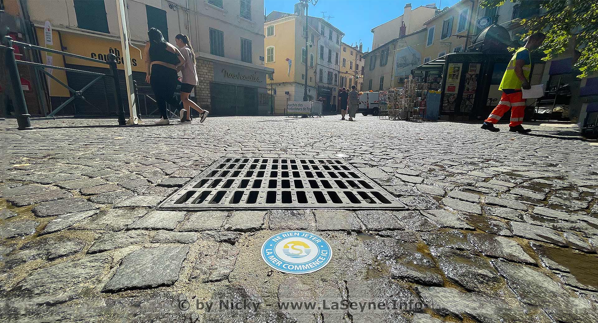 Vous le saviez ?.. La Mer commence ici - L'antenne métropolitaine de La Seyne procéde depuis le 09/08/2021 à la pose de macarons en lave émaillée « Ici commence la mer » en bordure des grilles de récupération des eaux pluviales. Cette opération à vocation à sensibiliser le public sur la pollution générée par les déchets jetés dans les avaloirs, dont les mégots, qui cheminent, via le réseau pluvial, jusqu'à la mer. Dans un premier temps, cent-vingts macarons seront disposés sur l'ensemble de la commune : une soixantaine en centre-ville et sur le port, l'autre partie à proximité des plages (Sablettes, à Saint-Elme et Mar Vivo).