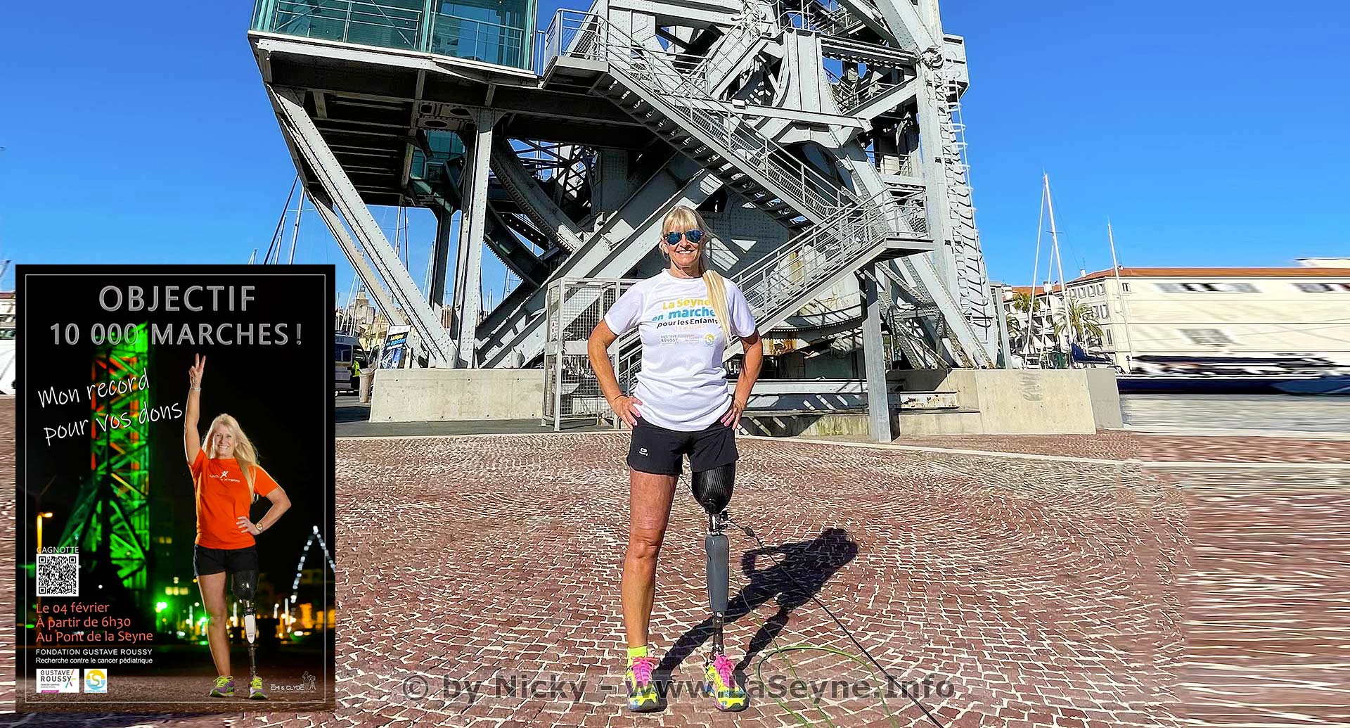 Ascension du Pont-Levant: Encourageons Valérie Hirschfield et Joris Jacquard, le 04/02/2022 - OBJECTIF 10'000-MARCHES !.. Haut du Pont-Levant, Vendredi 04 février 2022, l’athlète seynoise unijambiste Valérie Hirschfield tentera 22 ascensions des 40 mètres du Pont-Levant. A ses côtés, Joris Jacquard, dans le cadre du Projet Noé, vise en 12 à 14 heures les 222 aller-retours, soit la hauteur de l’Everest. en savoir plus - cliquer ici