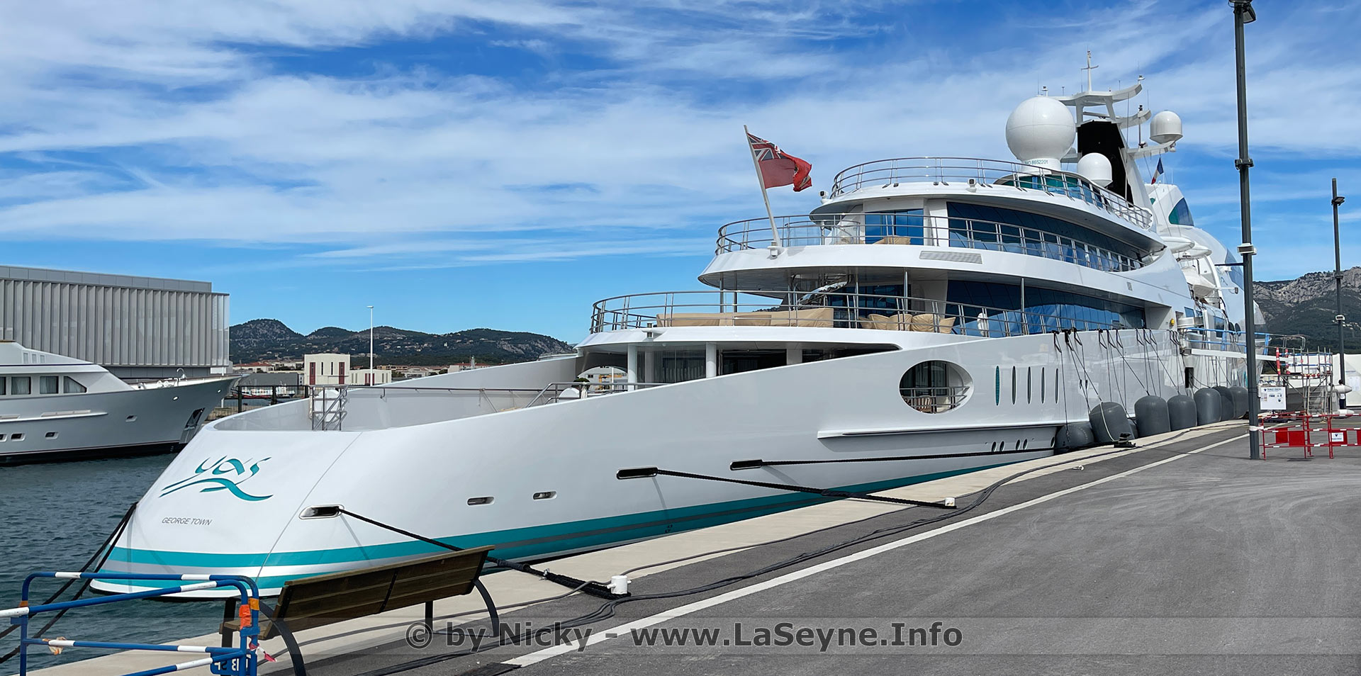 Le Yacht "Yas" amarré à La Seyne - Le Yas est un yacht à moteur de luxe construit par Abu Dhabi Mar Shipyard à Abu Dhabi. Il est la propriété de Hamdan bin Zayed bin Sultan Al Nahyan, membre de la dynastie régnante d'Abou Dabi. En 2013, Yas détient le titre du huitième plus grand yacht privé du monde, avec ses 141 m de long. L'architecte naval a été la société Koninklijke Schelde Groep BV (KSG) et l'aménagement intérieur et extérieur conçu par Pierrejean Design Studio basé à Paris. Le bateau a été lancé en novembre 2011. en savoir + cliquer ici