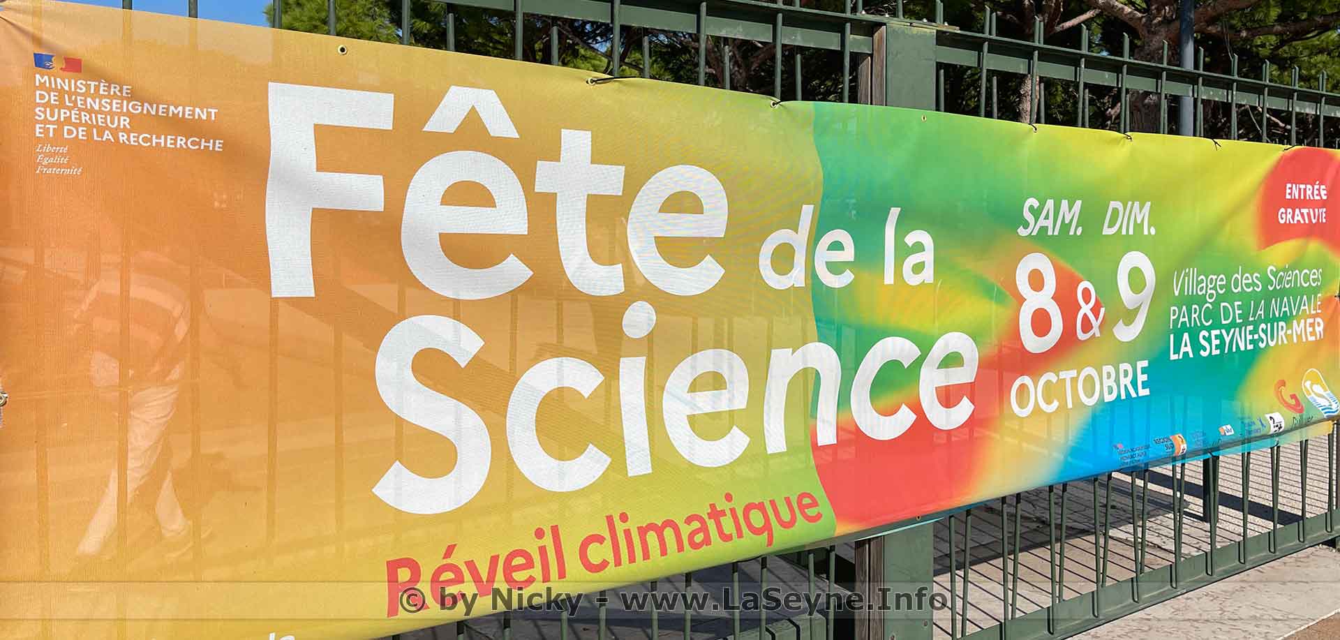 La Fête de la Science 2022 « Le Réveil climatique », du 07 au 09 Octobre - A l'occasion du lancement de l'édition 2022 de la Fête de la science, Nathalie Bicais, Maire de La Seyne-sur-Mer, a le plaisir de vous convier à l’inauguration du village de la science, en présence de Jean-Luc Parrain, directeur de recherche au CNRS, vendredi 07 octobre 2022 à 11 heures sur le Parc de la Navale. Explorez les stands de découvertes technologiques, expériences, ateliers, expositions. Du samedi 08 au dimanche 09 octobre 2022. Samedi de 10h00 à 18h00 et dimanche de 10h00 à 17h00. voir le programme - cliquer ici