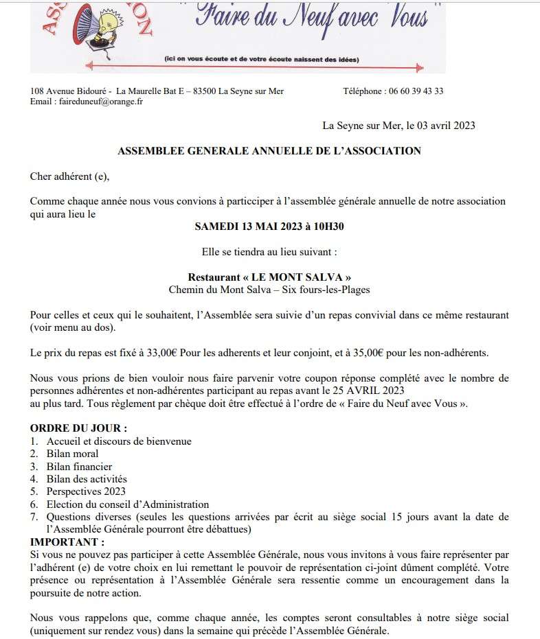 Aujourd'hui, Assemblée Générale de notre association !