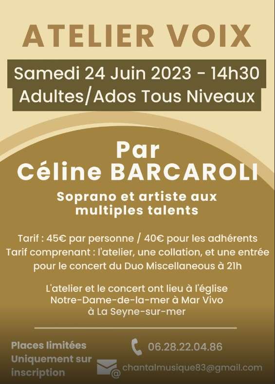 Bonjour,il est encore temps de vous inscrire ! Et à l'atelier voix, et au concert dont la qualité n'est plus à prouver !