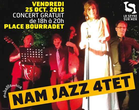 Dans le cadre de « Plus belle ma rue », vous êtes conviés place Bourradet, vendredi 25 octobre à 18 heures au septième rendez-vous du festival « Les Tréteaux », avec le concert gratuit de « Nam in Jazz », formation de Bossa Nova.