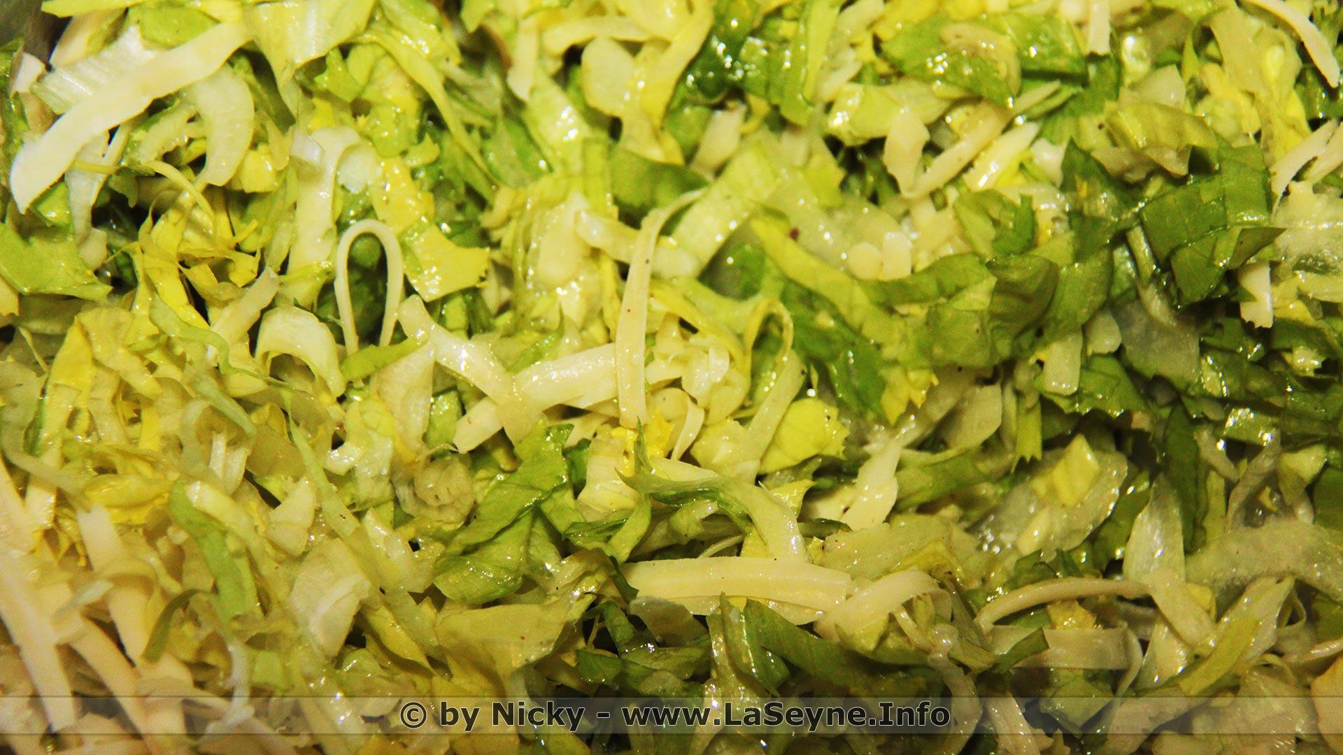 Une Scarole de Compétition - De retour du marché, émincer finement la scarole et les oignons ... préparer une vinaigrette avec 2cs de vinaigre de vin, 3cs d'huile d'olive, 3cs de l'huile d'arachide, de la moutarde, de l'ail, du sel et poivre du moulin. mélanger le tout et agrémentez de Comté grossièrement râpé ...