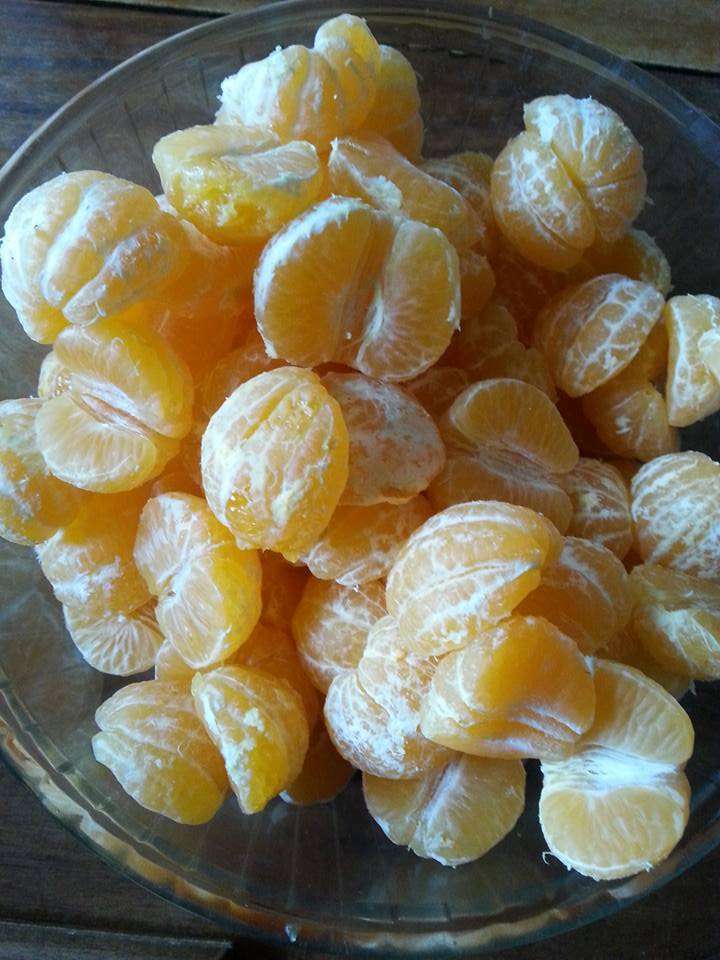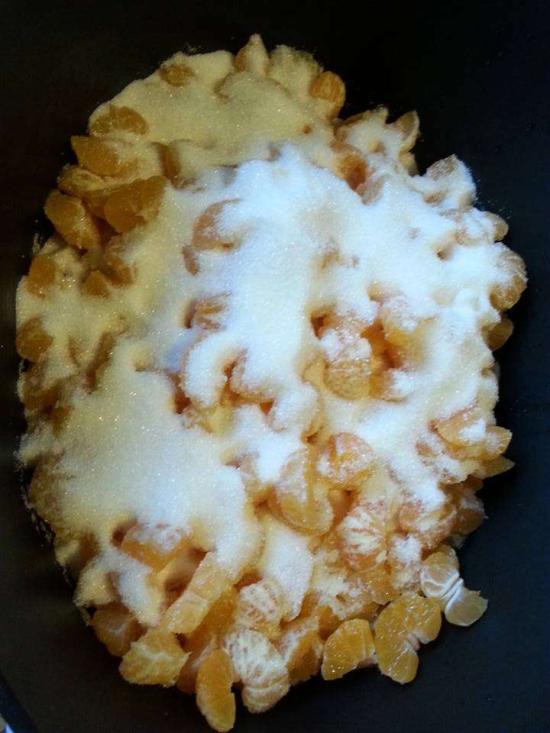 Après avoir épluché et pesé les clémentines, les couper en petits quartiers.