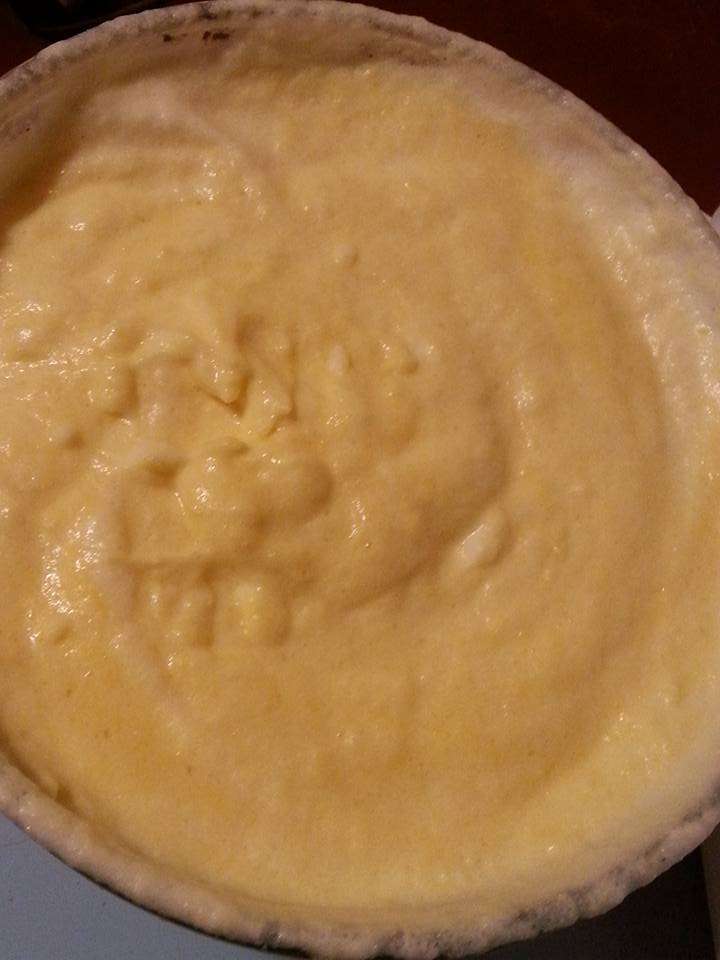 3. Mélanger et travailler continuellement à l'aide d'un fouet, les œufs, sucre, jus de citron, zeste de pamplemousse, reste du jus de pamplemousse avec la pincée de sel au bain-marie jusqu'à obtention d'une crème ... finir avec les 45 g de beurre ... Verser la crème sur la pâte brisée cuite à blanc et y déposer les suprêmes de pamplemousse