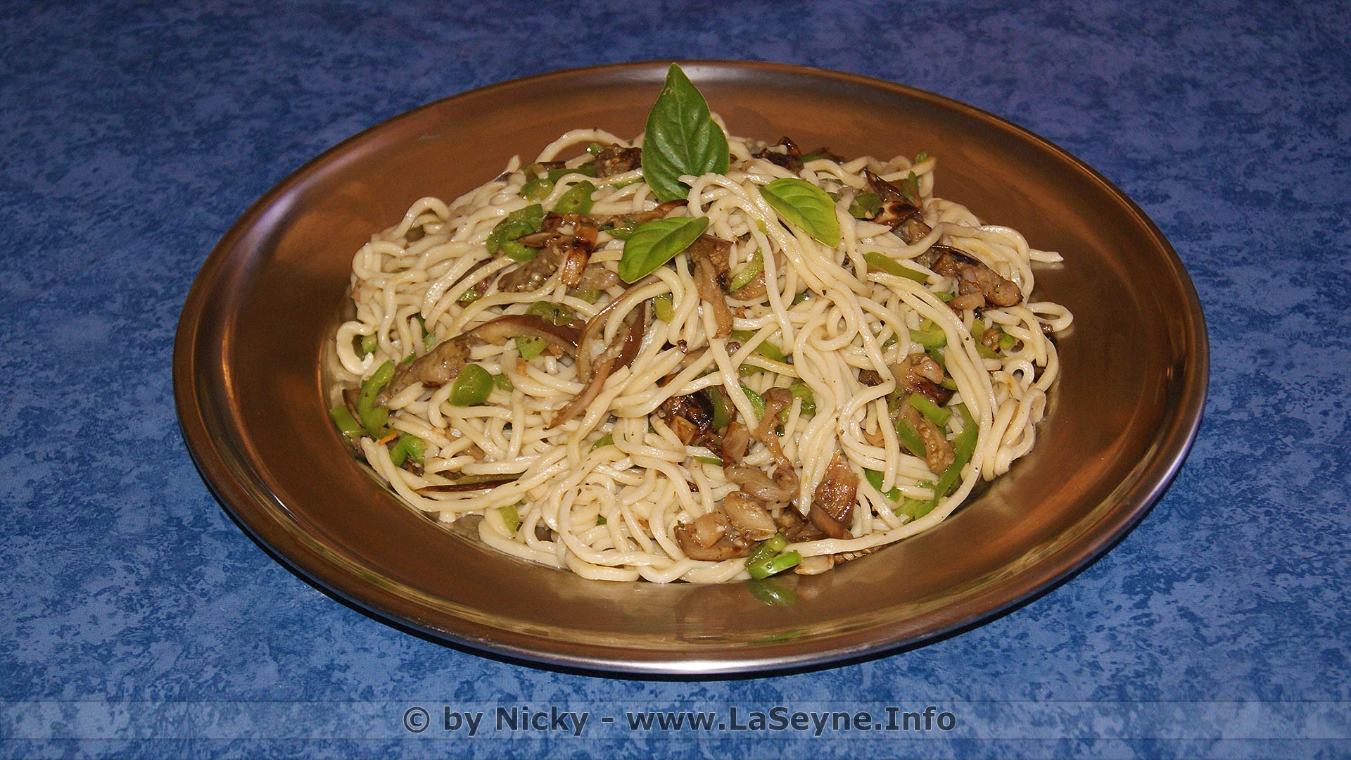 Pâtes fraîches Maison à l'Aubergine grillée dans l'Huile d'Olive, Piments doux, Ail, Basilic, Origan, du Marché bien-sûr, Sel et Poivre du Moulin ...