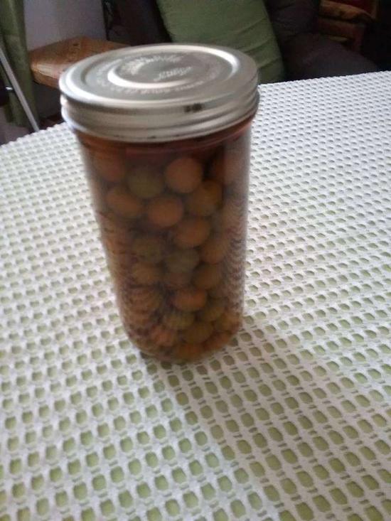 Alors, vous mettrez dans un bocal (après les avoir laissé tremper dans de l'eau vinaigrée pendant au moins 2h, puis rincé) vos mirabelles que vous piquerez d'un coup d'aiguille à l'opposé de là ou était la tige, et y ajouterez : 1/4 d'alcool de fruits à 40 °, ou 1/4 d'alcool à 90° (si c'est le cas, rajoutez 1/4 de litre d'eau...), et 1/4 de rhum brun. 200 Grs de sucre roux.
