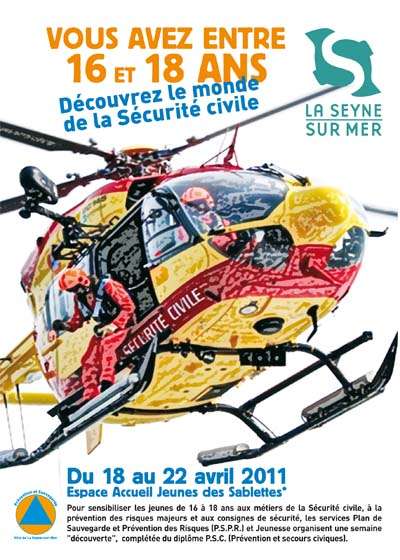 On a tous, dans notre jeunesse, eu envie d'être pompier, mais cette profession demande beaucoup d'investissement. La sécurité civile est un dispositif plus accessible qui permet d'exercer une activité proche de celle des pompiers. Pour les jeunes, c'est donc l'opportunité d'être actifs, au service des autres, tout en voyant l'envers du décor qui peut conduire certains de nos professionnels à partir exercer des missions extérieures, comme actuellement au Japon après le séisme. Pour permettre aux jeunes de tester si ce métier leur plaît réellement, nous organisons, du 18 au 22 avril à l'Espace accueil jeunes des Sablettes, une semaine de découverte.