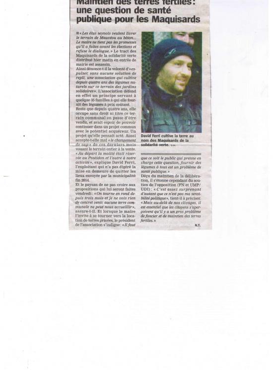 Merci à tous ceux qui nous soutiennent mêmes s'ils n'ont pas pu se libérer pour assister au conseil municipal un matin de semaine. Que tous les élus qui n'ont pas voté pour les légumes sachent que nous ne lâcherons rien et que les Maquisards s'inviteront dans la campagne des élections départementales.