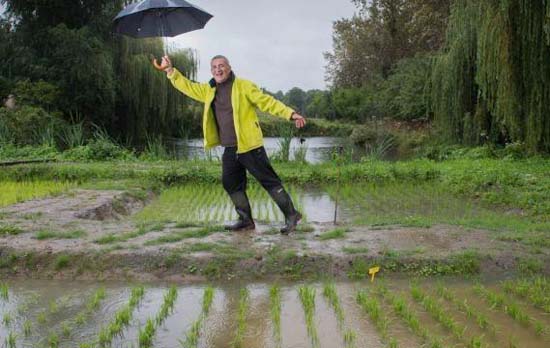 Avec des pluies diluviennes dignes des moussons en cette fin août, on pourrait se croire en Asie. Il n'y a guère que les températures qui changent. Un temps presque idéal pour Alexandre Reis. Cet agriculteur qui n'aime pas faire comme les autres fait pousser du riz à Évran (Côtes-d'Armor). En Bretagne...