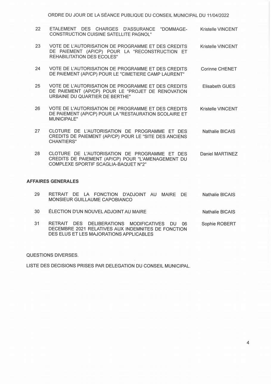 L'Ordre du Jour du Conseil municipal Seynois du Lundi 11/04/2022