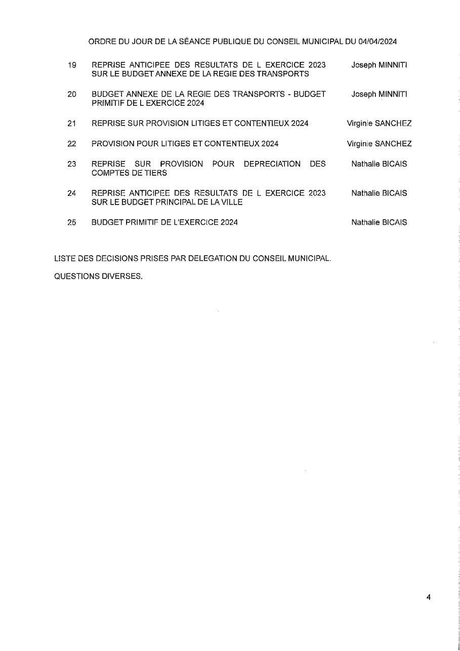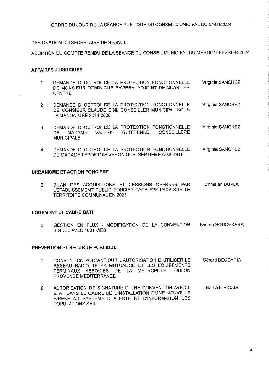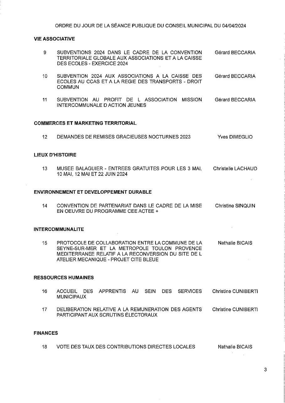 L'Ordre du Jour du Conseil municipal Seynois du Jeudi 04/04/2024