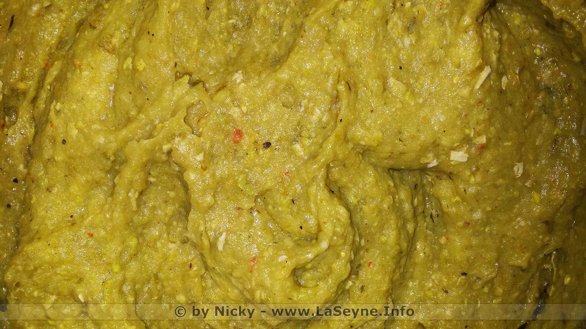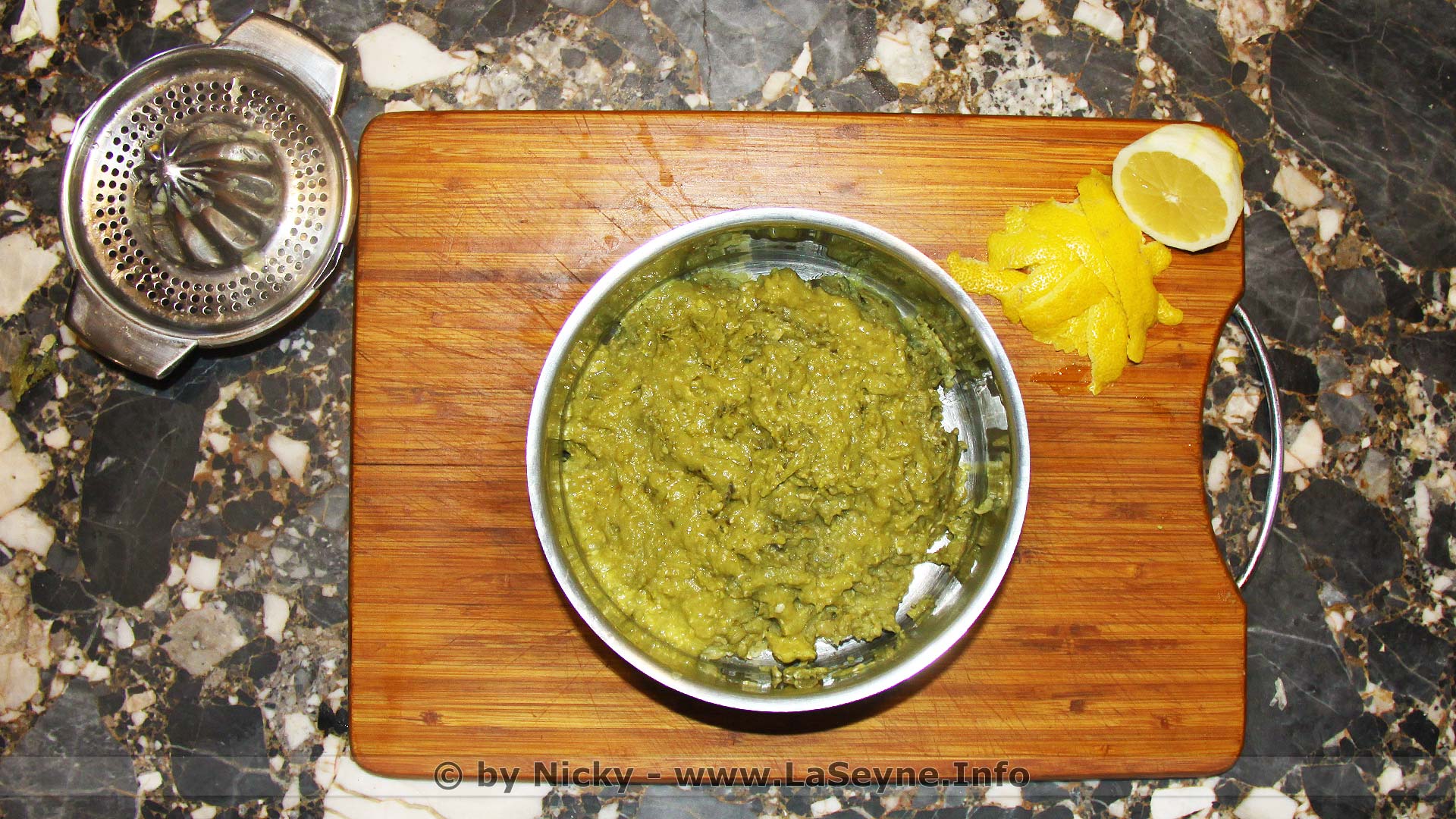 Commencer à faire chauffer le couscoussier avec l'eau et le piment ... laver les légumes à l'eau fraîche ... éplucher les patates et couper les, comme les fèves entières, grossièrement ... ajouter l'ail et le persil ... mettre le tout à cuire à la vapeur du couscoussier le temps qu'il faut ... zester le citron et presser son jus (vous pouvez sans problème con-geler les zestes en trop pour la pâtisserie à venir) ... récupérer le piment et verser le tout dans un moulin de légumes ... saler, poivrer du moulin, ajouter un demi jus de citron et un bon filet d'huile d'olive ... servir sur du pain fait maison, des croûtons à l'apéro, ou encore avec des pâtes fraîches ou sur la pizza ... Merci à Françoise pour les Fèves de sa production et à une certaine Elodie S. pour son inspiration au caviar de légumes :-) ...