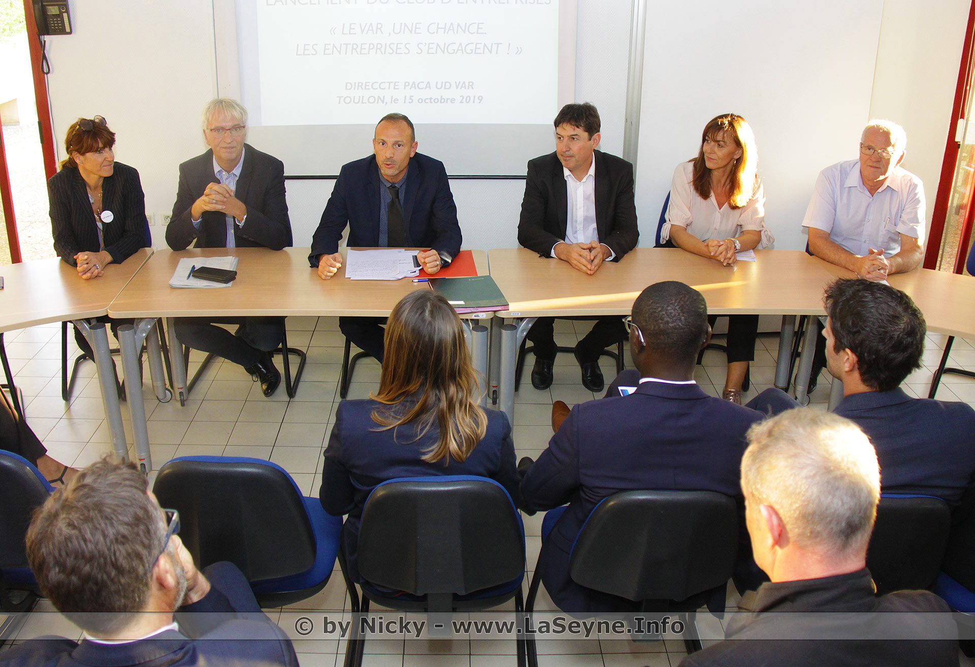 Les entreprises ont pu développer des actions concrètes à travers 13 thématiques regroupées en 3 grandes catégories : • 1) L’insertion professionnelle • 2) L’accès à l’emploi pour les jeunes • 3) La levée des freins périphériques à la recherche d’emploi ... Alain TESTOT, directeur Délégué de la DIRECCTE a présenté la Charte d’engagement au Club Départemental du Var. Pôle emploi du Cannet des Maures, La mission Locale de La Seyne, Cap emploi de Fréjus et Face Var étaient accompagnés des 4 entreprises leader pour le lancement du Club.